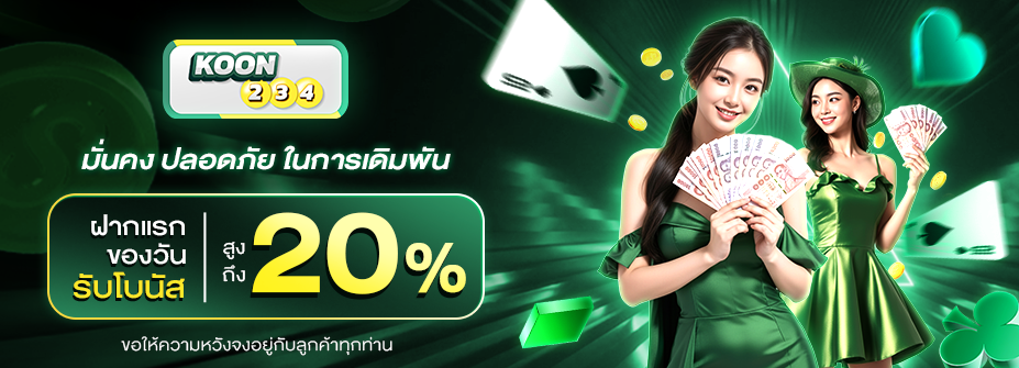 ที่พิเศษสุดๆ คือ เมื่อคุณสมัครสมาชิกใหม่กับ KOON234 คุณจะได้รับโบนัสต้อนรับสุดพิเศษถึง 100% ของยอดฝากแรก ยกตัวอย่างเช่น ถ้าคุณฝากเงินครั้งแรก 1,000 บาท คุณจะได้รับเครดิตเพิ่มอีก 1,000 บาท รวมเป็น 2,000 บาทที่คุณสามารถนำไปเดิมพันได้ทันที